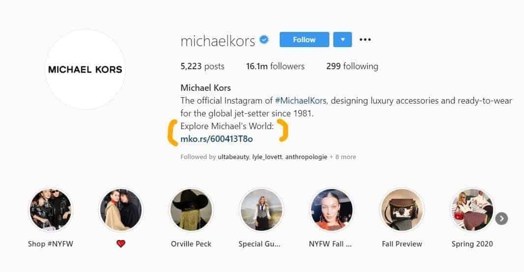 The final and most important part of any ecommerce Instagram bio is a link to your ecommerce website. If you don’t include your website, your customers won’t know how to find your products and you risk losing out on a possible sale. Luckily, Instagram allows you to include one clickable link in your bio. Make sure you are using this opportunity to drive people to your website. Your link should be short, connected to your brand when possible (e.g., www.macys.com) and avoid too many numbers or letters that make it look spammy.