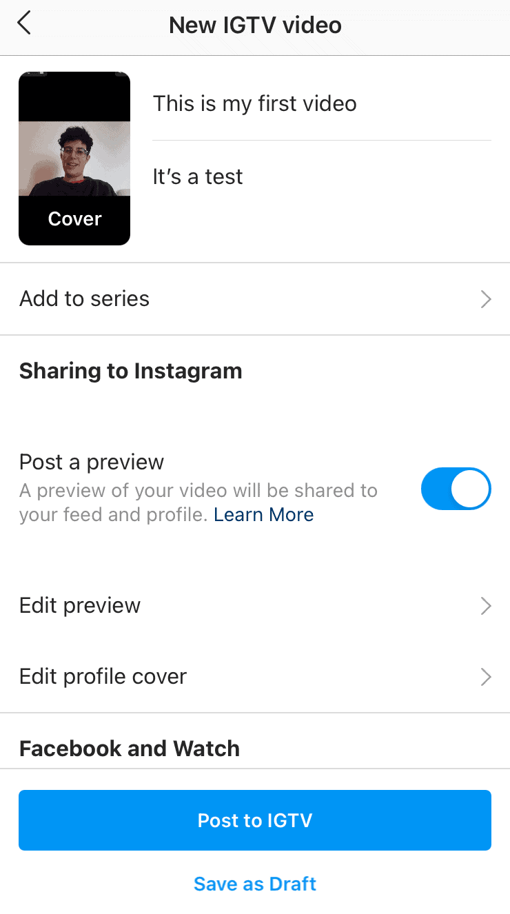 Select the series you just created to add your video to it.Click to Post on IGTV