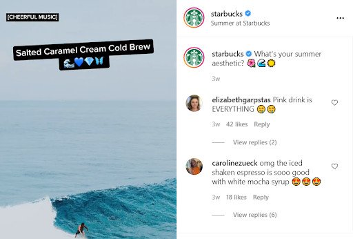 Strive for content that resonates. One of the best ways to do this is by showing different, more human sides to your brand or asking a question that elicits a response from your audience. Take Starbucks for example. By asking a question that speaks directly to their target audience, they’re able to showcase their products in a fun way that evokes emotions of fun and adventure.