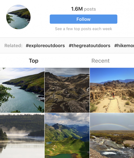Hashtags are another great resource to find accounts that post relevant content.Search hashtags directly on Instagram and then click into posts that grab your attention. From there, you can find out more about the account that posted the content and reach out to that user if you’re interested.For example, if you run an outdoor gear brand, search hashtags like #outdoors, #nature, or #greatoutdoors to find content and, as a result, users who could be good fits for your own brand. You can then organize relevant hashtags using Sked’s Hashtag Manager to save time when creating future posts.